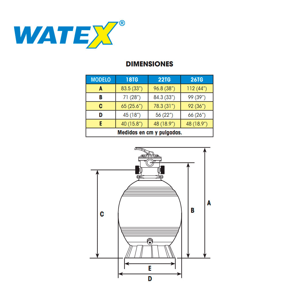 Filtro de arena de montaje superior para piscinas enterradas, proporciona una filtración eficaz y sin complicaciones. Su tanque brinda gran resistencia a la intemperie, gracias a su fabricación en base a un material polimérico resistente y de color sólido; además su válvula multipuerto patentada de 7 posiciones cuenta con una acción de palanca fácil de usar.