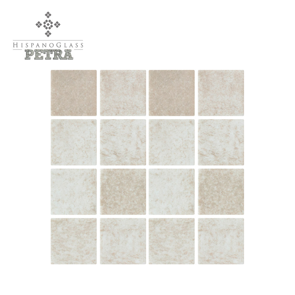 Petra Limestone, un mosaico que evoca la calidez de la piedra caliza. Su tono neutro y textura suave es perfecto para crear ambientes serenos y minimalistas, ideales para quienes buscan la conexión con la tierra.